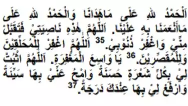 "Segala puji bagi Allah yang telah memberi petunjuk kepada kami dan segala puji bagi Allah atas segala yang telah Allah karuniakan kepada kami. Ya Allah, ini ubunubunku, terimalah amal ibadahku dan ampunilah dosa-dosaku. Ya Allah ampunilah dan sayangilah orang-orang yang mencukur dan memendekkan rambutnya, wahai Tuhan yang Maha Luas ampunan-Nya. Ya Allah tetapkanlah untukku setiap helai rambut kebajikan dan hapuskan untukku setiap helai rambut keburukan dan tinggikan derajatku di sisi-Mu".