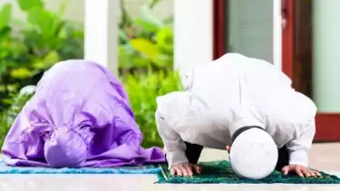 Ilustrasi suami mengerjakan shalat berjamaah bareng istri di rumah selain berangkat ke masjid. (Getty Images/iStockphoto/kzenon)