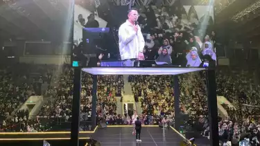 Dengan gaya ceramah khasnya yang penuh guyon, Syeikh Assim Al Hakeem membuat Istora Senayan penuh tawa.