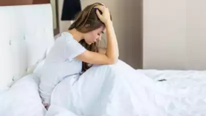 Ilustrasi wanita menahan nafsu di atas kasur