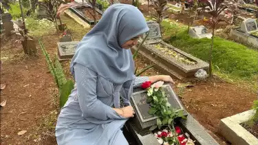 Momen Bernadetha berziarah saat hari raya Idul Fitri 1444 H (Sumber:instagram/@shellabernadethaa).
