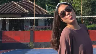 Tampil Anggun, Gendis berpose diatas lapangan voli saat perayaan hari raya Idul Fitri 1444 H (Sumber:instagram/@gendisazzahraa)