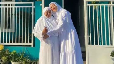 Megawati Pertiwi tampil cantik berpose dengan sang Ibunda dengan balutan baju serba putih di hari raya Idul Fitri 1444 H (Sumber:instagram/@megawatihangestrip).