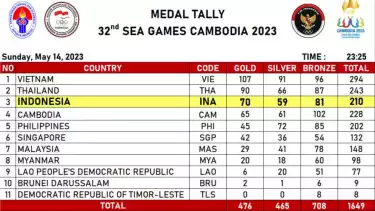 Berikut Klasemen Sementara Perolehan Medali SEA Games 2023 Kamboja Hingga Senin (15/5/2023) pukul 4.00 WIB: