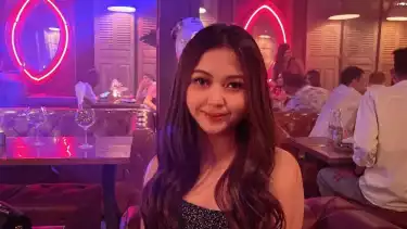 Malita yang sedang di dalam bar sambil menunjukkan wajah tersenyum. Foto: Instagram - Malita.