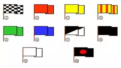 Sepuluh, bendera hitam. Bendera hitam putih terbagi secara diagonal, jika bendera diperlihatkan dalam posisi diam disertai papan nomor kendaraan, maka itu berarti pembalap diperingatkan bahwa pembalap sedang bertindak tidak sportif. Jika bendera hitam dan berikut papan bertuliskan nomor kendaraan, maka pembalap yang bersangkutan diharuskan untuk mengurangi kecepatan, dan segera masuk pit space area dan dilakukan diskualifikasi.(Rifki Wiryawan/wnb/toz)