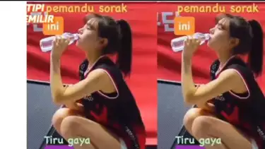 Megawati Hangestri saat time out, minum dengan cara duduk seperti adab Islam.