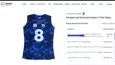 Kemudian, harga jersey milik pevoli kebanggaan Indonesia yakni Megawati Hangestri turut di lelang.