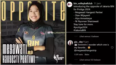 "Introducing the opposite of Jakarta BIN for Proliga 2024: Megawati Hangesti Pertiwi, Dian Wijayanti, Alya Annastasya, Ni Nyoman Shaniawati, Stay tune for more," tulis @bin_volleyballclub pada unggahan terbarunya.