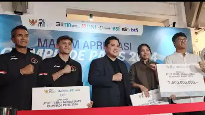 Jakarta, tvOnenews.com - Para atlet peraih medali di Olimpiade Paris 2024 kembali mendapatkan bonus miliaran sebagai bentuk apresiasi yang diberikan Kementerian BUMN.