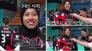 Megawati Hangestri yang sedang melakukan wawancara tiba-tiba dihampiri oleh Vanja Bukilic yang dengan sengaja mengusili Mega dengan menepuk-nepuknya.