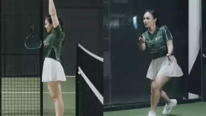 Wulan Guritno saat melakukan pemanasan sebelum memulai olahraga padel Sumber : - Instagram/wulanguritno