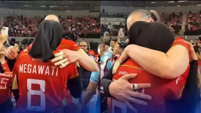tvOnenews.com - Outside Hitter Rusia Irina Voronkova langsung menberi pelukan setelah melihat rekan setimnya, Megawati Hangestri menangis terharu.