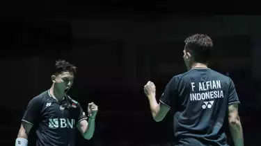 Di final ganda tanah air ini akan bersua dengan wakil India, Satwiksiraj Rankireddy/Chirag Shetty yang sebelumnya mengalahkan Liang Wei Ken/Wan Chen dari China. (viva/mir)