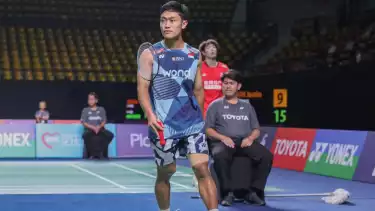 Tanpa ampun, Prahdiska Bagas Shujiwo berhasil menaklukan Kiran George dengan skor akhir 21-16, 21-11.