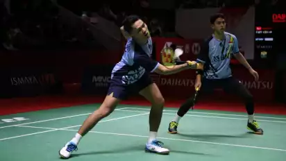 Pasangan ganda putra nomor satu dunia itu berhasil menang rubber game dengan skor 18-21, 21-14, 21-10 selama 48 menit atas Pramudya Kusumawardana/Yeremia Erich Yoche Yacob Rambitan di Istora Senayan Jakarta, Selasa (24/1/2023).