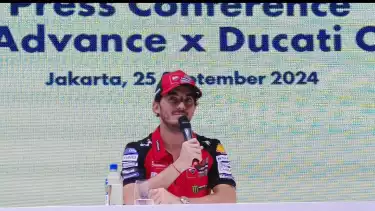 Sebelum melakukan persiapan, Ducati Corse Sporting Director, Mauro Grassilli bersama pembalap Francesco Bagnaia sempat menghadiri acara di Jakarta.